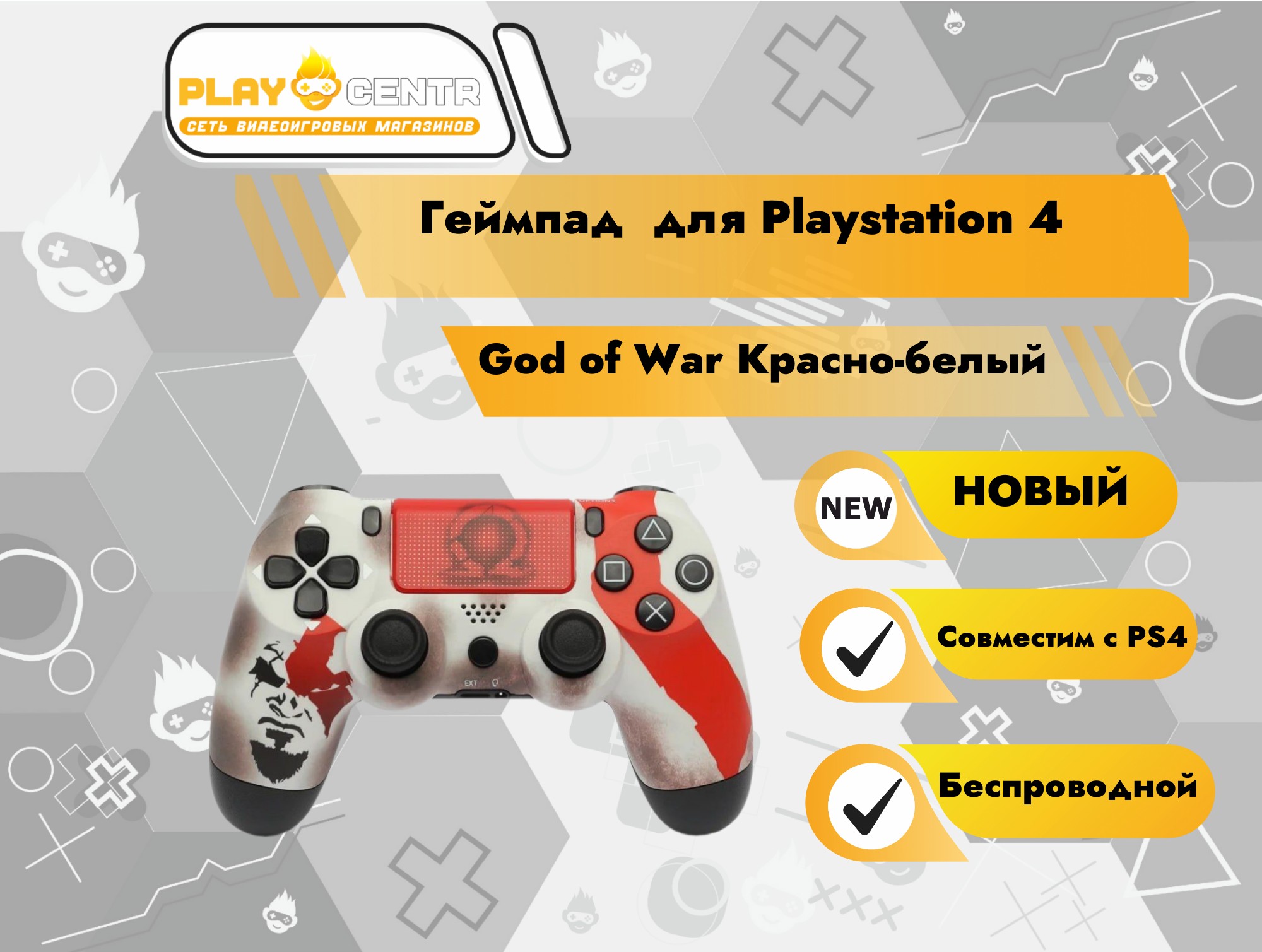 Геймпад для PS4 (God of War Красно-белый)